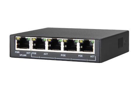 • Interface 4 PoE 10/100Mbps RJ45 ports(1-4) 1 10/100MbpsRJ45 port(5th)