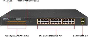 • Supports PoE Power up to 30.8 watts for each PoE port